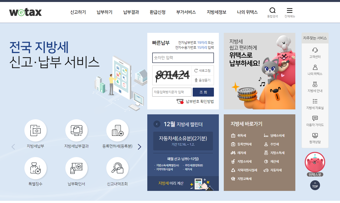 ▶ 납 부 : 위택스(www.wetax.go.kr), 전용(가상)계좌 이체, 카드 납부 등